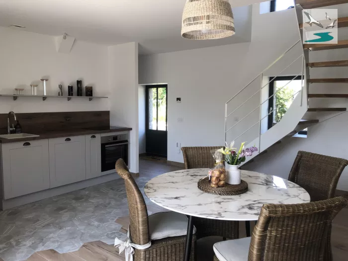 C’est une habitation indépendante de 80 m2. Au rez-de-chaussée : une grande pièce à vivre baignée de lumière et la cuisine ouverte accueilleront vos moments de partage et de convivialité. Un grand placard, une chaufferie et des WC complètent les aménagements à ce niveau de logement. la pièce à vivre s’ouvre sur un petit jardin privatif qui vous permettra de vous détendre en toute tranquillité. Un barbecue sera mis à votre disposition pour les soirées d’été.